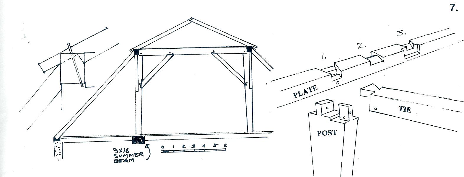 THE SOLITE BARN The report on the Solite barn, enclosed with the last HVVA Newsletter, was a rush job for the State that allowed no time to pass it by many people, especially John Stevens, who I hoped would add something, which he did, and I am including it in this issue along with some drawings to illustrate his points. John corrected two of my spelling errors and questioned one of my examples of nail saving evidence in the report. It was weak and confusing and so I will eliminate it from the next edition of the Solite Barn Report that will be a more refined and cooperative work. John made the suggestion that I change my simple threshing floor design, with wooden pins, for a more refined type of floor with rabbeted sills and a double rabbet on the center sill. This is a nice design but I had hesitated because I know of evidence for only one such barn floor in Ulster County, that being in some reused parts in New Paltz. I think of it as being a northern style of barn floor. On some of the most refined examples the ridge on the center sill is undercut which locks in the floor boards and holds them down without any nails. It is this kinds of detail that needs study. I got an E-mail from Greg Huber in Pennsylvania. He enjoyed the Solite Barn Report but questioned some of my conclusions and terminology. He wrote, “I believe I am correct in this. Your report says that the Gonzalez side-entrance barn in Dutchess County is an example of a major-minor rafter barn. The Gonzales barn does not have upper purlins, as this statement directly implies that there are lower purlins. There are certainly wall plates but they do not constitute lower purlins. The purlins certainly support the collar ties as is found in the m/m rafter barns of Ulster County. The similarity of the Gonzales barn to the m/m rafter barns is fundamentally found only in the support of the collar ties. And I believe it ends there.” Greg, You are correct the Gonzales barn does not have upper purlins but I cannot agree with you that the Gonzales and Teller barns do not have cultural roots with the Ulster County barns. Whatever we call these longitudinal timbers, in this Hudson Valley vernacular roof system, ‘purlins’ , or ‘upper-purlins,’ will not change their function. These purlins rest on the collar-ties, support the minor rafters and stiffen the roof from racking. You insist that major and minor rafters be of different sizes and so dismiss the Teller barn in Albany County, as “not in the same category.” Why not enlarge your category? Did you notice that on John Stevens’s centerfold measured drawing of the Solite barn, he labeled the major rafter a “principal rafter” and the minor as a “common rafter.” I think of these as being terms used to describe an English roof system that is distinct but a close cousin of our Dutch m/m barns. Going back a ways in time, I recall being in the loft of the 1766 Nieuwkirk barn in Ulster County. There was a handful of curious people, I believe that you and Jack Sobon were there. Jack pointed out the unusual rafter system. There had been a number of alterations made to the roof, including the removal of parts of some of the ties and ridge pole. This, with added purlin posts and a missing side aisle, made the barn a puzzle. It took quite a bit of persuasion for me to see what the original structure had been. Someone called it a “major-minor rafter system.” I recall that it was Jack who said it. (He says he didn’t.) Whomever, the m/m designation seems to fit and indicate its distinction from the English principal rafter system. Peter