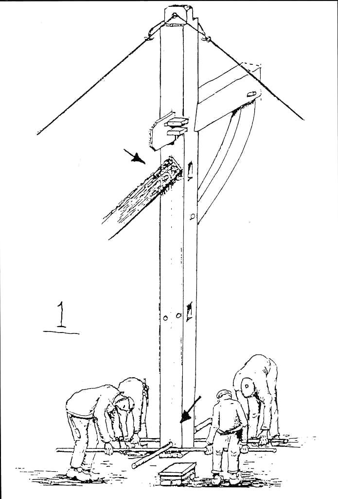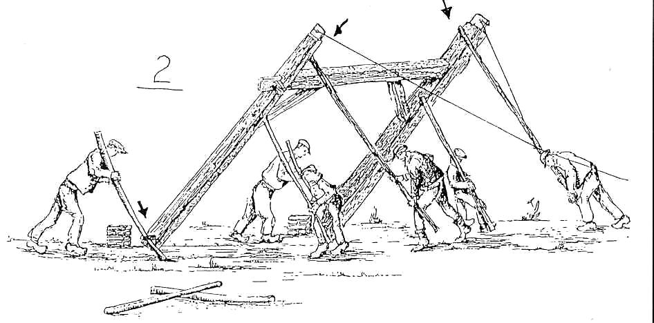that the stronger poles could be used to raise the next bent. A