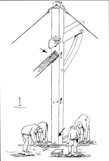 Then the trenails were quickly hammered in. Now the frame stood