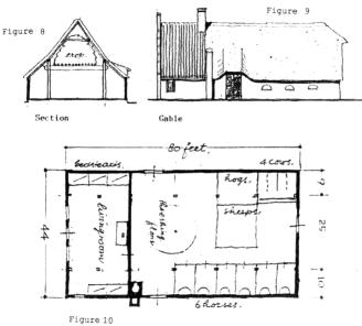 Clues to the interior arrangement of the farmhouse include the