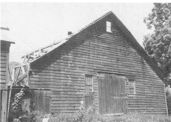 standing gable was roofed with tile, while the barn at rear was