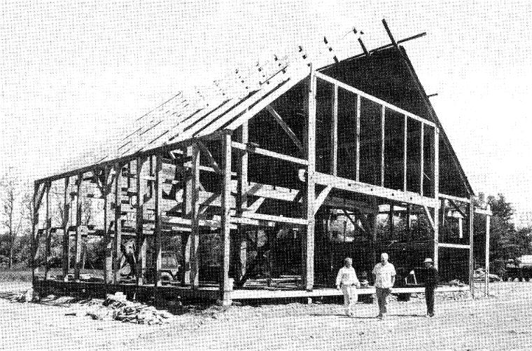 The barn in the process of being re-erected on