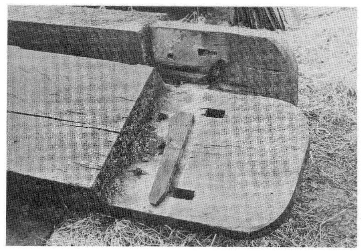 is shown as are three holes for pegs and two for wedges. The