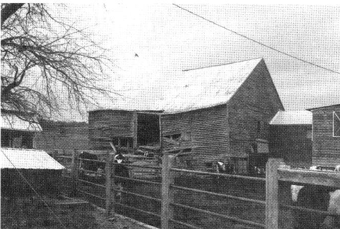 a farmhouse, wagon shed, cider mill, corn crib, chicken coop, pig