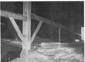 seven are pine and one is oak. Of the sixteen H-frame columns eight