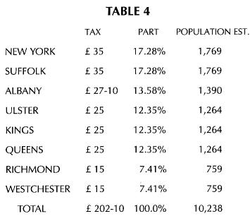 In 1680 there were 8 jurisdictions in New York with structured Government and law enforcement. The character of these neighborhoods can be assumed from the scale of this sample Levy imposed on all the Counties in 1681.