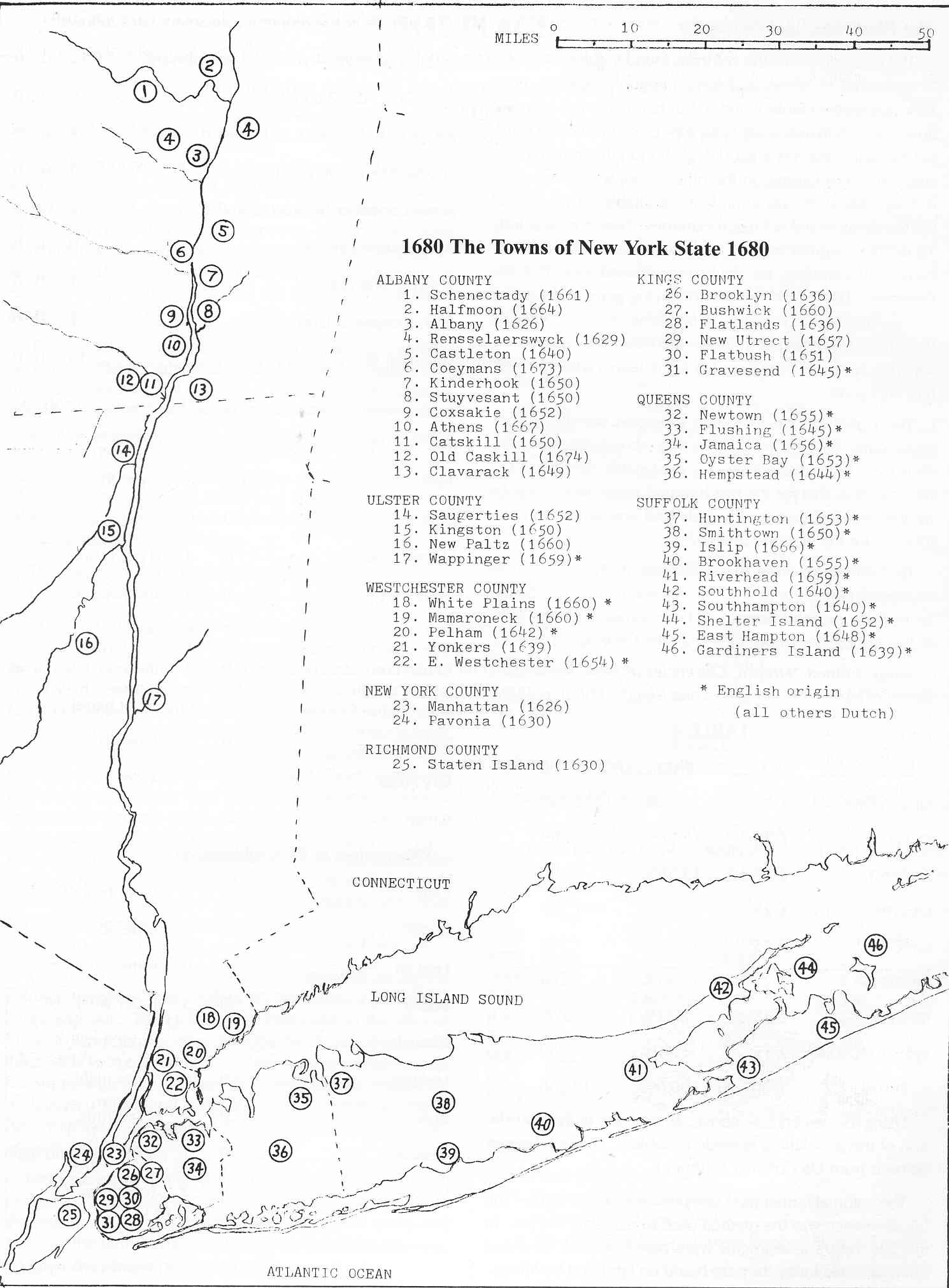 *The Dutch Towns included-Flatbush, Brueckelen, Bushwyck, New Utrect, and Flatlands. The English Towns included Gravesend, Newtown, Flushing, Huntington, Brookhaven, Southhold, Smithtown, Jamaica, Hampsted, and Easthampton. (Gravesend is included with the English on the one hand and with Kings County on the other)
