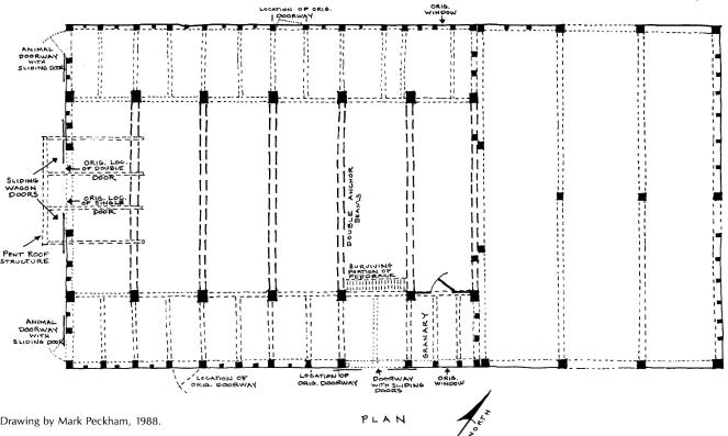 feet wide, and contained six bays. The barn, painted red, had sliding